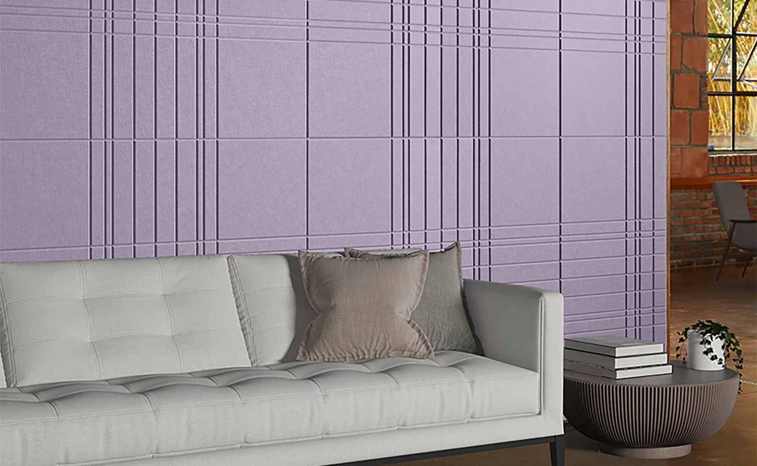• визуально структурирует пространство — сетка квадратов «выстраивает» стену, добавляет ей глубины;