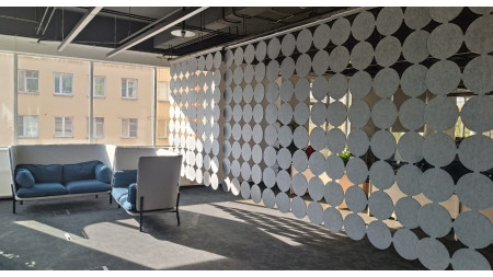 Максимальная длина полностью развёрнутой перегородки составляет 7 метров: это позволяет эффективно разделять большие открытые зоны — например, выделять переговорные, рабочие блоки или зоны отдыха.