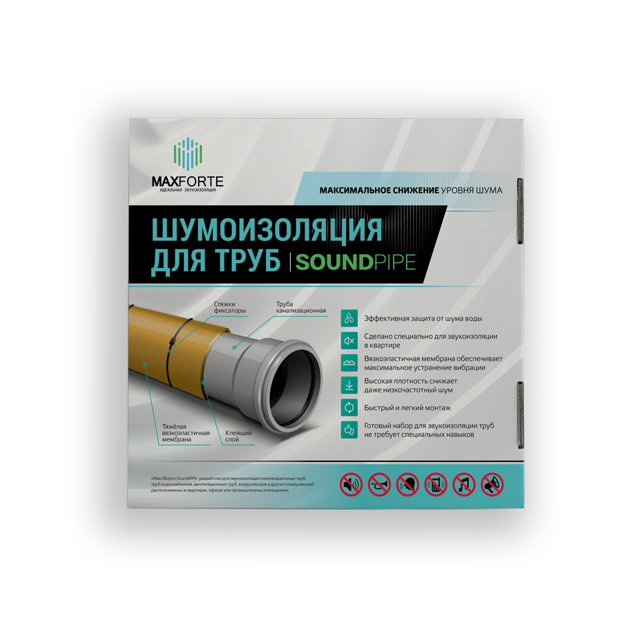 «МаксФорте СаундПайп (SoundPIPE)» разработан для звукоизоляции канализационных труб, труб водоснабжения, вентиляционных труб, воздуховодов и других коммуникаций, расположенных в квартирах, офисах или промышленных помещениях.