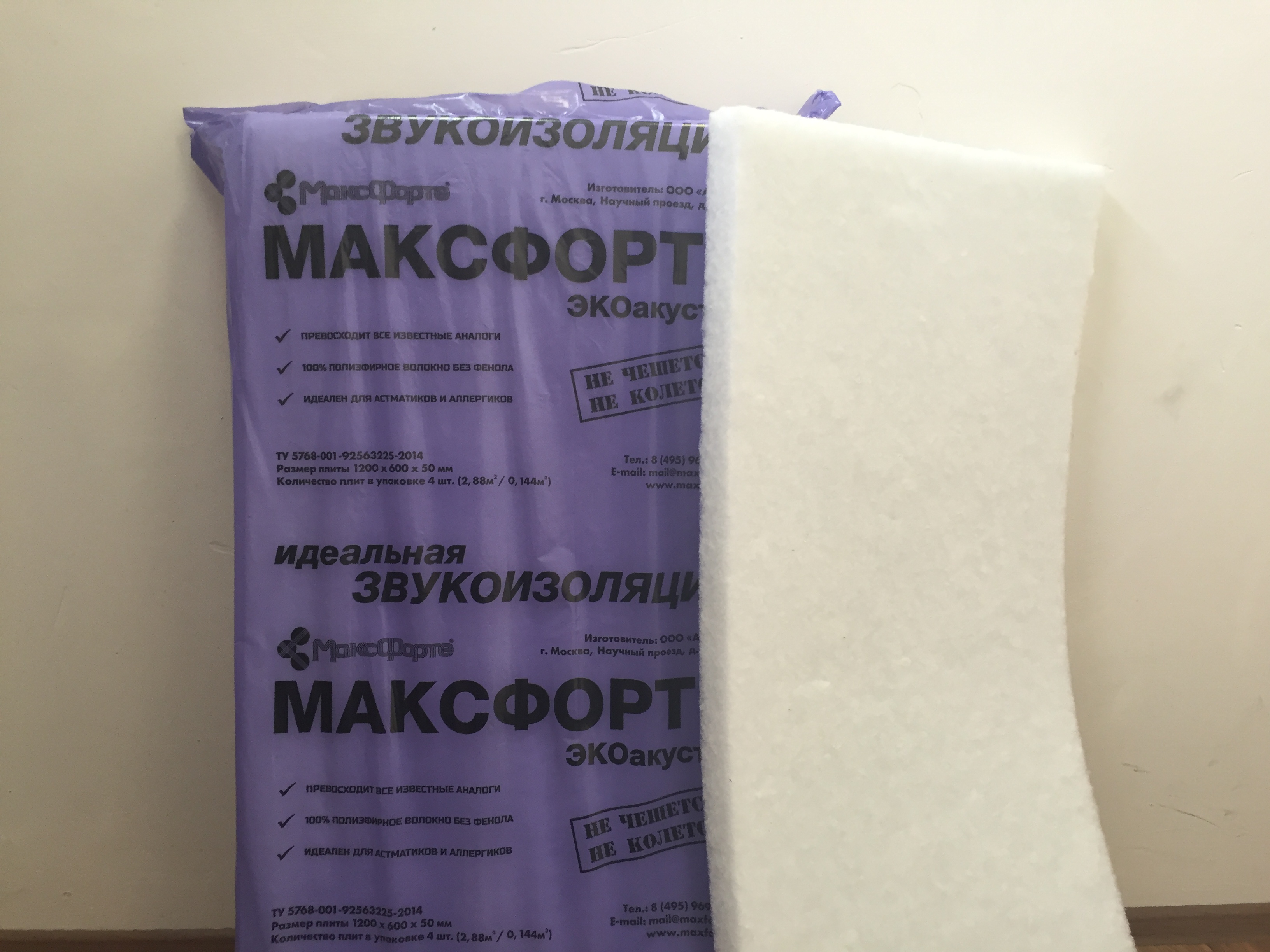 Звукопоглощающие плиты МаксФорте-ЭкоАкустик изготавливается из полиэфирных волокон.